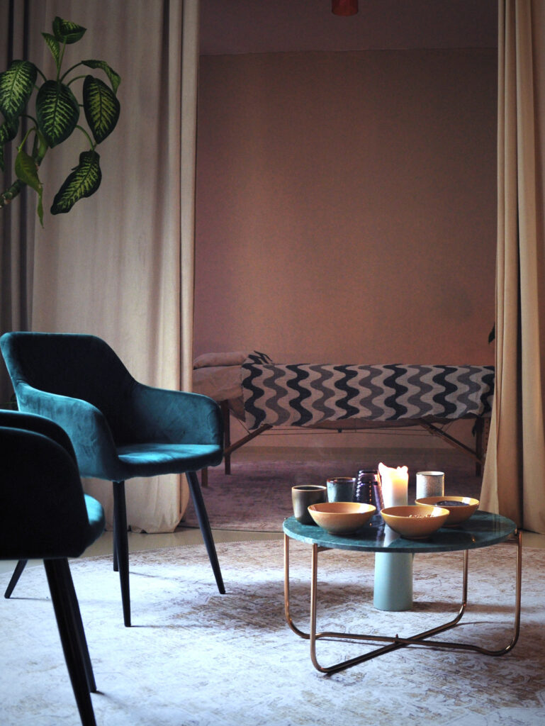 You lie down on a massage table fully clothed, except for your shoes. Comfortably installed, you close your eyes and have nothing to do. The soft, subdued atmosphere invites you to relax and unwind.